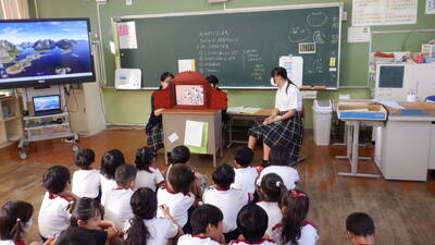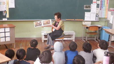 今日は、1年生と4年生。子どもたちはすぐにお話の世界に引きこまれていきました。