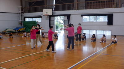 本日、婦人会の皆様をお招きして、3年生に対して「佐々音頭」の指導をしていただきました。佐々音頭は地元に昔から伝わる伝統ある踊りで、佐々小学校では、毎年3年生が婦人会の方に指導をいただき、地域行事のおくんちで踊っていました。
