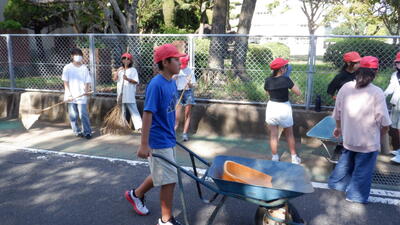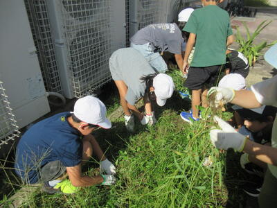 本日6時間目は代表委員会でした。毎回、代表委員会の時は会議に参加しない子は奉仕活動を行います。(暑さが厳しい時期は取り止めていました)本日は、4年生が理科園の草取り、5年生と6年生が校庭の清掃、6年生の一部がグリーンベルトの落ち葉掃きをおこないました。暑さもだいぶ落ち着いてきたので、子どもたちも集中して作業に取り組めました。