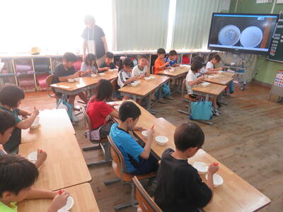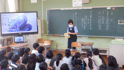 本日3年生は、口石小学校栄養教諭の森田先生による食育指導を受けました。授業のめあては「おはし名人になろう」です。子どもたちは実際におはしを使って、正しい持ち方や、してはいけない使い方を学びました。今日学んだことを学校でもご家庭でも実践して、立派なおはし名人になってほしいと思います。