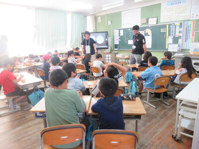 今日の避難訓練は「不審者対応」でした。不審者が侵入したことを知らせる放送の後は、不審者を刺激しないように教室で静かに待機し、不審者対応が完了した放送がなるまで待つというものでした。その後は全校体育館に集合し、県警スクールサポーターの皆様の「不審者対策」の話を聞きました。Q&A形式の動画も視聴し、子どもたちは集中して話を聞くことができました。「自分の身は自分で守る」ための大切な知識を得る機会となりました。