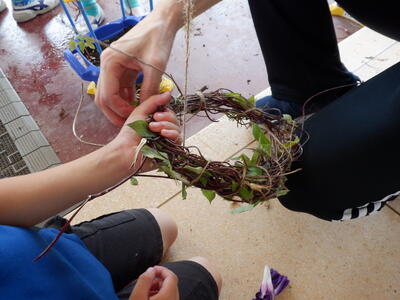 土台が完成したので次は飾り付けです。どんなリースができるのか楽しみです。