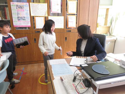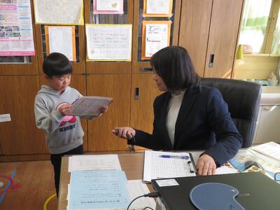 本日昼休み、校長室で2年生のかけ算九九検定が行われました。この検定では、かけ算九九をどれだけ速く、正確に唱えることができるのかを、校長先生が一人一人確認します。今日は5の段の検定でした。子どもたちは検定に合格するために、自分の順番が来るまで5の段を唱える練習をしていました。そして本番、練習の成果を発揮して見事合格した子どもたちは、校長先生から合格の印のシールをもらうことができました。今回は5の段でしたが、他の段でも合格をして、かけ算九九マスターを目指しましょう!