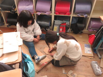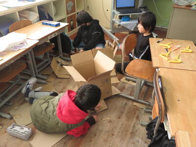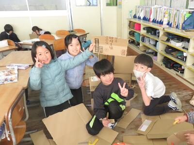 今日の3年1組の3、4時間は図工でした。今回の図工から段ボールを使って作品を作ります。何を作るのか聞いてみると、家や犬小屋といった声が聞こえてきて、これからの作品づくりを楽しみにしていることがとても伝わってきました。その後、子どもたちは友達や先生と協力しながら段ボールを切ったり、組み立てたりしていき、作品が完成しました。みんな自慢の作品ができたあと、見せ合って喜んでいたようで、良かったです。