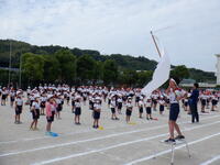 応援団長の旗振りに合わせて、赤組と白組のかけ合い、声の張り合いがあり、聞いている私たちも心が燃えてきます。コロナ禍後、初めて運動会で歌を歌います。開会式での「運動会の歌」にご注目ください。