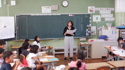 昨日、4年1組で国語の研究授業がありました。教材は「ごんぎつね」。ごんが兵十に打たれた最後の場面の学習でした。「うなずいたときのごんは、幸せか不幸せかはっきりさせよう」のめあてで、それぞれの意見を伝え合う、活発な交流が見られました。生き生きと課題に向かう子供たちの姿がたくさん見られ、非常に盛り上がった授業になりました。授業を提供してくださった先生、ありがとうございました。