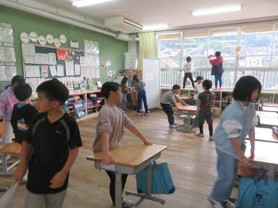 月・水・金曜日の昼休み終了後は、掃除の時間です。この時間子どもたちは、日ごろ使用している教室や廊下などの清掃に取り組んでいます。また、毎週金曜日は4年生が各クラスのゴミを回収してくれています。掃除の時間は、「もくピカそうじを徹底して、学校も心もピカピカにしよう。」というテーマのもと取り組んでおり、実際に子どもたちは、学校全体を掃除でピカピカにしてくれています。これからも、もくピカ掃除を続けて、ピカピカな学校にしていきましょう!