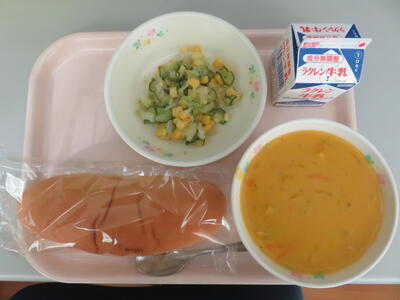 本日12月22日は、1年間で最も昼の時間が短い冬至でした。今日の佐世保の日の出は7時20分、日の入りの予想時刻は17時18分だそうです。とても短いですね。冬至に合わせて今日の給食は、かぼちゃを沢山使用した、“米粉と豆乳のパンプキンポタージュ”が出されました。かぼちゃの甘味や旨味がとても出ていて、体が温まる一品でした。とても美味しかったです。