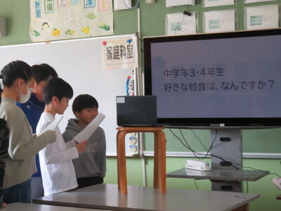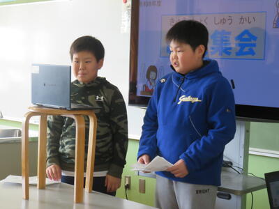 本日の佐々っ子タイムの時間、給食集会が行われました。今回の集会では、いつも給食を作ってくださる調理員さんや、献立を考えてくださる栄養教諭の先生に感謝の気持ちを伝えたり、給食委員会が中心となって企画したクイズやアンケートの発表を行ったりしました。佐々小学校では全6名の調理員さんが、夏は暑い中、冬は寒い中、児童・教職員約400人分の給食を調理してくださっています。いつもありがとうございます。これからも、給食に関わっている沢山の方々に感謝しながら、美味しく給食をいただきましょう。