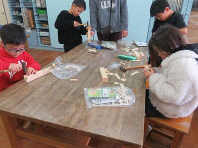 3年生図工 釘打ちトントン